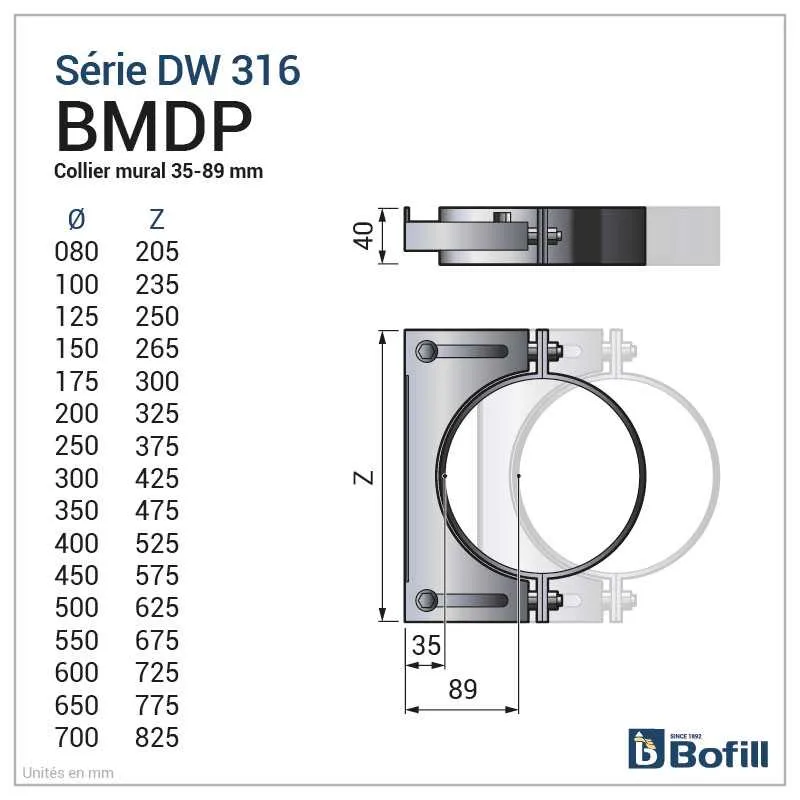 Collier mural réglable 35 à 89 mm - Pour DPI